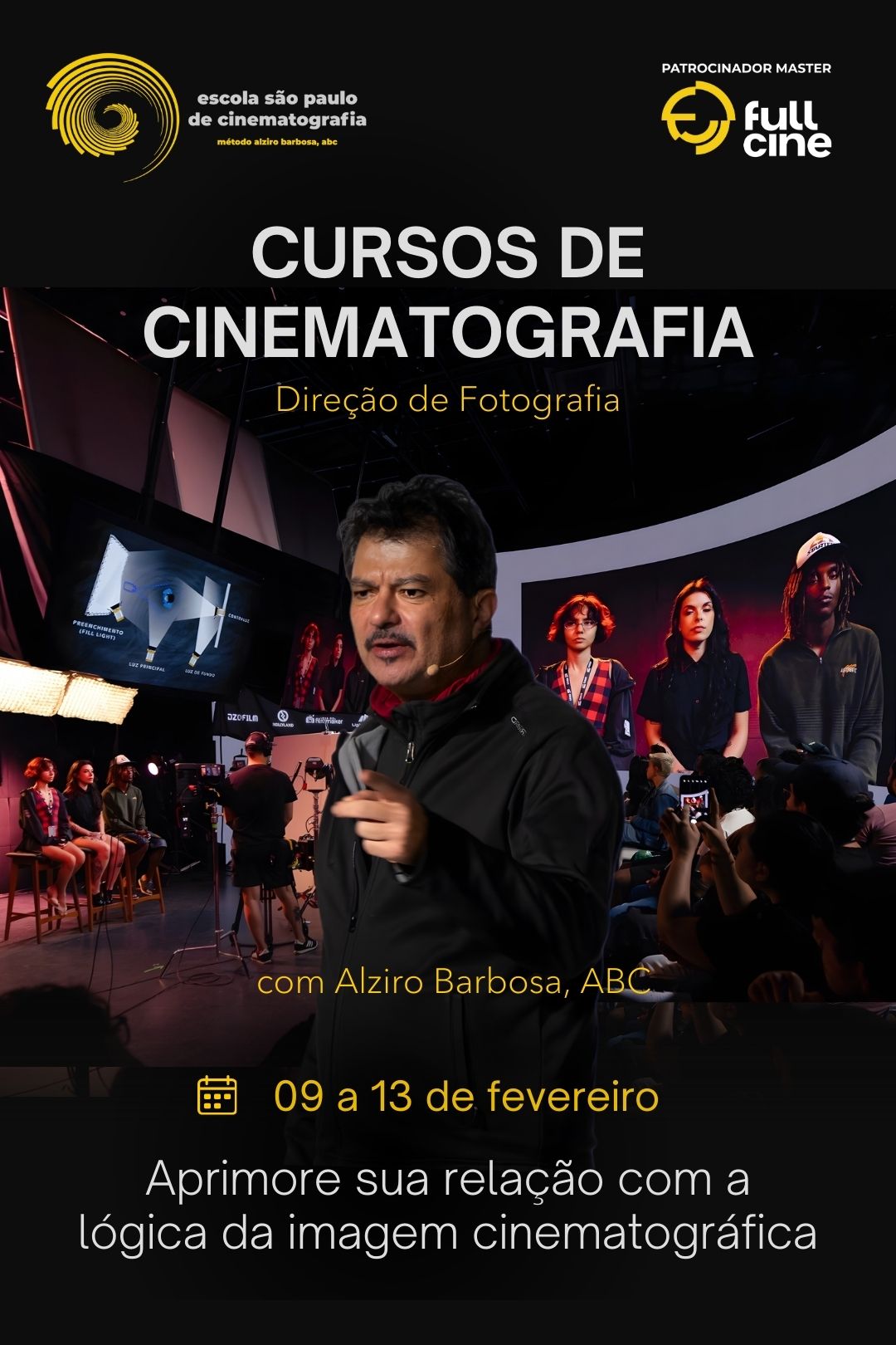Compartilha suas experiências profissionais em Direção de Fotografia de seus sets atuais e a experiência de mais de 10 mil cenas já realizadas por ele em diferentes gêneros e produtos audiovisuais.